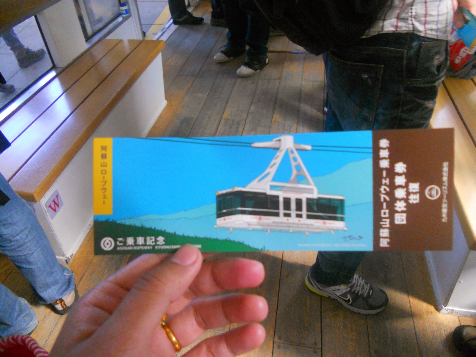 บริเวณปล่องภูเขาไฟทั้งหมดเรียกว่า อาโสะ โกทาเกะ จัดเป็น "หุบเขาภูเขาไฟที่ใหญ่ที่สุดในโลก" คือยาวถึง 18 กม. เส้นรอบวง 120 กม. ส่วนปล่องนาคะดาเกะ มีส่วนที่ยาวสุดของปากปล่องวัดได้ 600 เมตร ลึกลงไปถึงแมกม่า 160 เมตร สูง 1506 เมตรจากระดับน้ำทะเล และจะมีควันจากก๊าซซัลเฟอร์ไดออกไซด์พุ่งขึ้นมาตลอดเวลาการเดินทางขึ้นไปยังภูเขาไฟก็ต้องขึ้นกระเช้าไฟฟ้าที่สถานี Asozan Nishi อยู่ที่ชั้น 2 ของสถานี ค่ากระเช้าไปกลับ 1000 เยนนะก๊าบ เวลาขึ้นกระเช้าไปจนถึงยอดประมาณ 4-5 นาที มีกระเช้ามาทุก 15-20 นาที (เวลาเปิด ปิด 8:30-17:00) ตอนนี้สนุกสนานกันใหญ่ แหะ ๆ แต่ตอนขึ้นกระเช้าก็แอบเห็นแว๊บ ๆ นะว่ามีลุงคนนึงแกทุ่มทุนสร้างขนาดเดินเท้าขึ้นไปเองเลยเจ๋งมาก (ถ่ายรูปมาด้วยล่ะ ฮี่ ๆ)